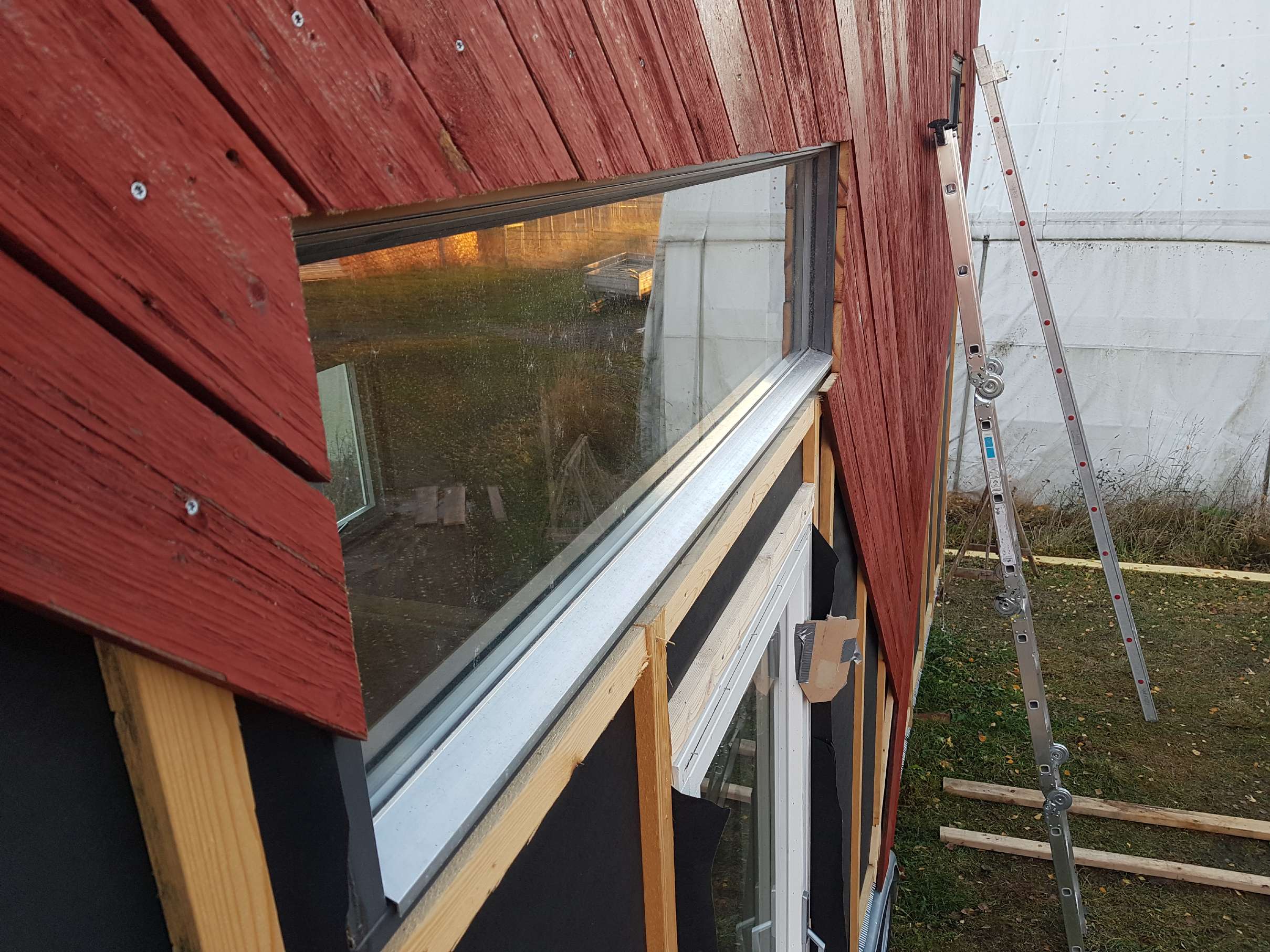 Utenpå begynner ytterveggene å nærme seg ferdig kledde – og den diagonale bordkledningen ser raff ut, om jeg skal si det selv. Taktekkeren venter på at pipa er installert før metalltaket kan legges, jeg venter på å få pipeelementene, og pipeleverandøren venter på at båten/bilen/toget med de bestilte pipeelementene skal komme fra det store utland.