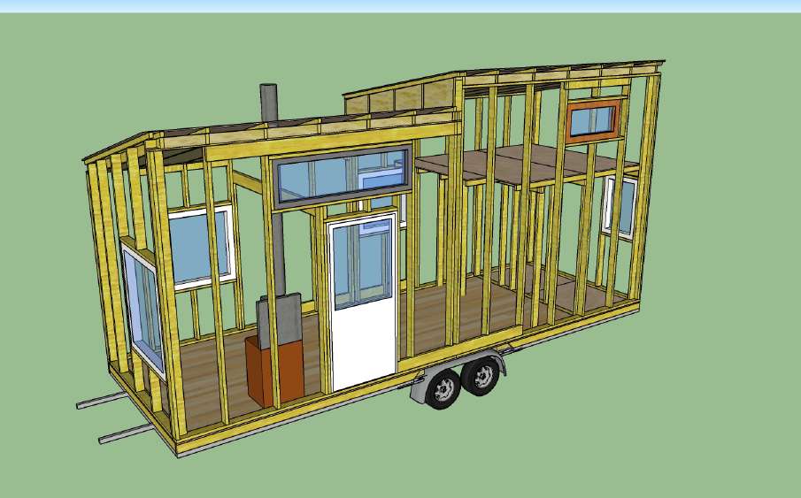 Jeg lærte å bruke tegneprogrammet SketchUp* for dette byggeprosjektet og har blitt helt fan. Innføringsvideoene for SketchUp fra Tiny Nest Project er en altfor godt skjult hemmelighet og anbefales på det varmeste. På en pedagogisk måte lærer de deg å bli gradvis mer avansert i programmet – fra det helt grunnleggende – for å spesifikt tegne et mikrohus til minste detalj. Den lille kostnaden for å få tilgang til videoene er kanskje den beste investeringen jeg gjorde i hele prosjektet. I tillegg til den brukte kappsagen. Og jeg er ikke sponset av Tiny Nest/Trimble. Eller Dewalt.