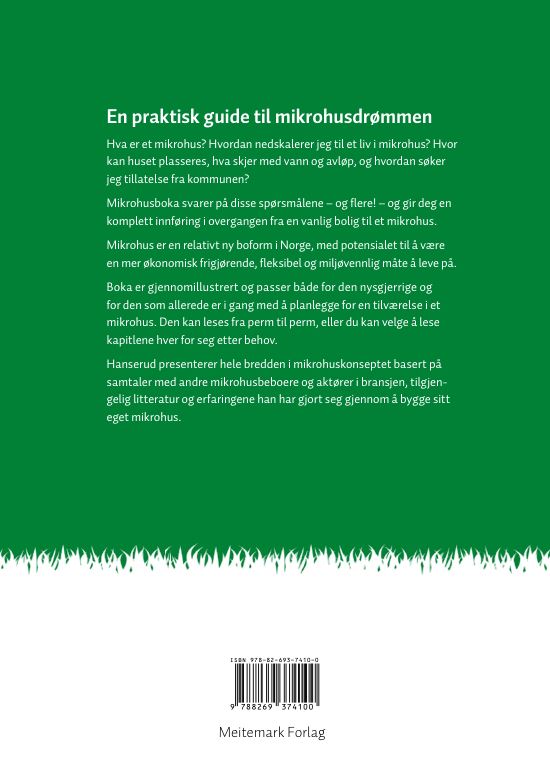 Hanserud presenterer hele bredden i mikrohuskonseptet basert på samtaler med andre mikrohusbeboere og aktører i bransjen, tilgjengelig litteratur og erfaringene han har gjort seg gjennom å bygge sitt eget mikrohus.